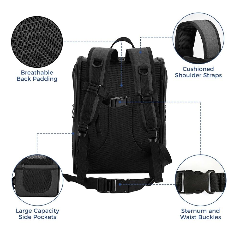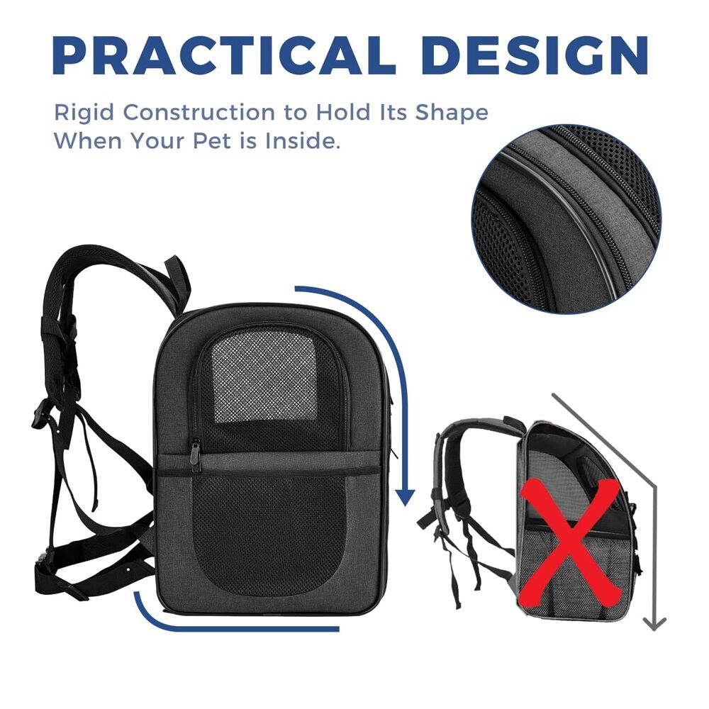 - BETTER CONSTUCTION-Well ventilated design for optimal airflow, two-way entry for easy access, top mesh window for more headroom and visibility, and thick, soft fleece bedding for your pet resting and relaxing. This backpack is firmly structured, providing ample room for your pet to move around.