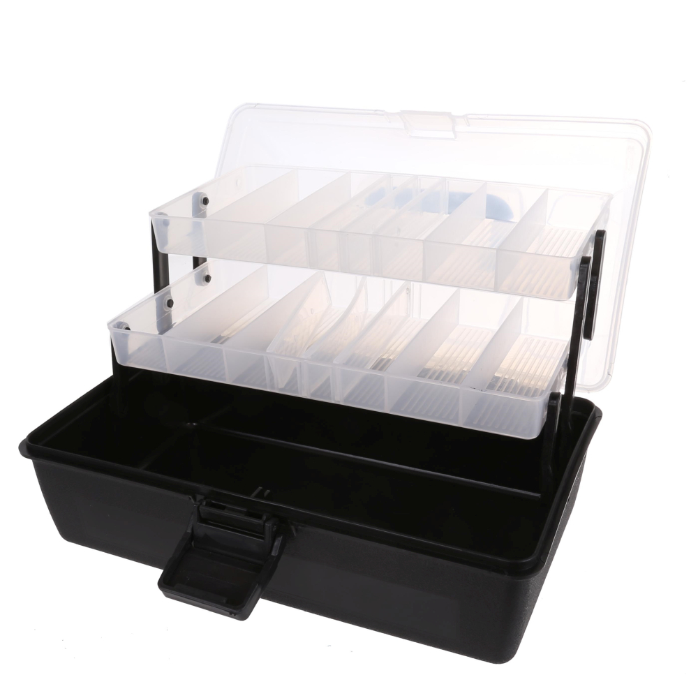 This PVC Cantilever tacklebox is great for organising all your gear for a day out on the water. The tacklbox features two clear plastic trays and a larger compartment at the bottom. The trays are perfect for sorting smaller components such as hooks, sinkers, swivels or lures, and they fit neatly in to the tacklebox, which features a comfortable carry handle. Affordable and ideal for kids an beginners to keep all your tackle in one place.