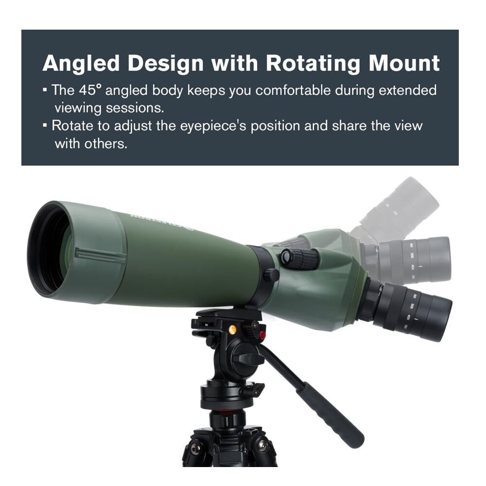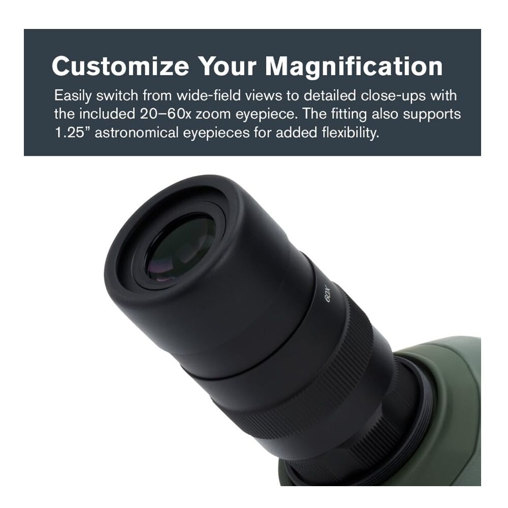- PERFECT VIEWING ANGLES: Use your spotting scope with the included 20-60x zoom eyepiece or any 1.25” astronomical eyepiece. Regal M2 ED’s rotating tripod mount allows you to position the eyepiece at the most comfortable viewing angle.