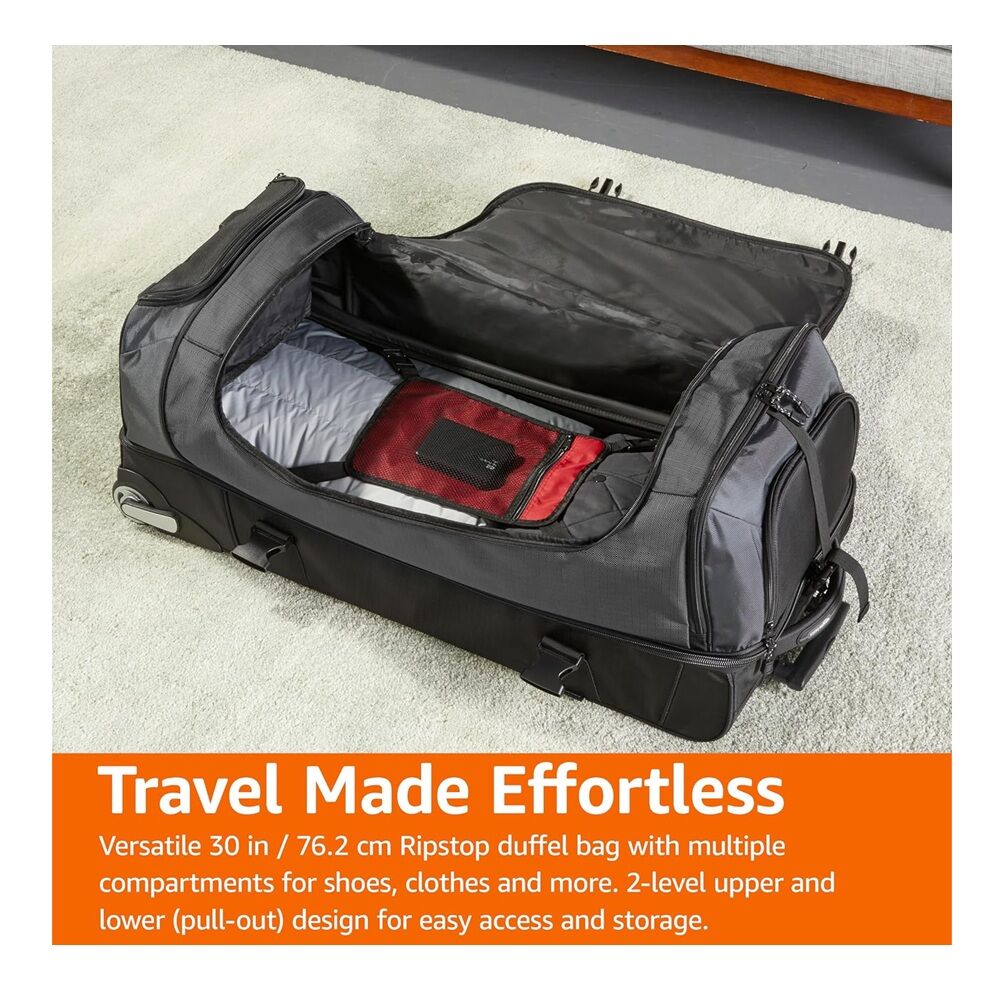 AMAZON BASICS Rolling Duffel Luggage Bag with Wheels
