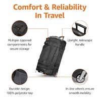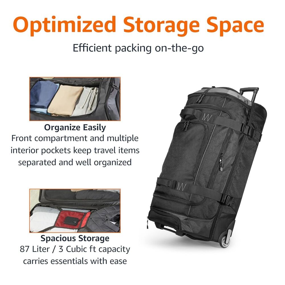 - EASY MOBILITY: Equipped with a telescopic handle and in-line wheels, this wheeled duffel bag offers smooth navigation through airports and busy streets