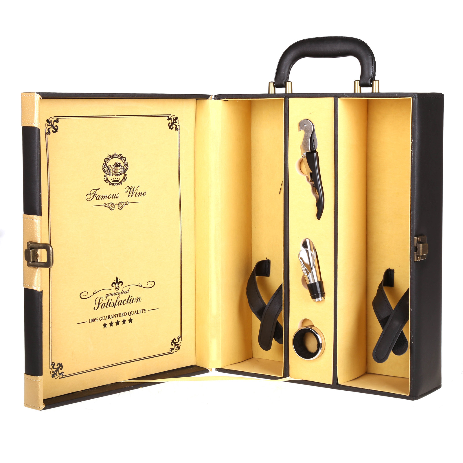Twin Bottle Wine Box with Carry Handle & Accessories