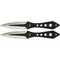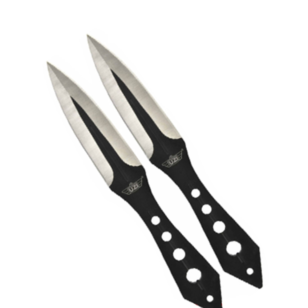- The UZK-TRW-TZP 2-piece throwing knife set features a durable, single-piece, stainless steel construction that is light weight and perfectly balanced for accurate throwing.