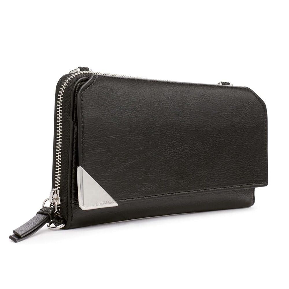 CALVIN KLEIN Women's Basalt Wallet Crossbody Bag with Adjustable Strap - Black / Silver - H3GQDDY4