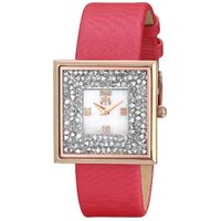 White Mother of Pearl Dial with Crystals, Rose Gold Stainless Steel Case, Pink Leather Band