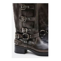 The BROCKS boot features the wide profile of an engineer boot with harness and buckle hardware adding an industrial edge and givign the design an adjustable fit.