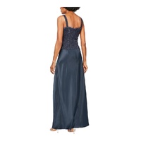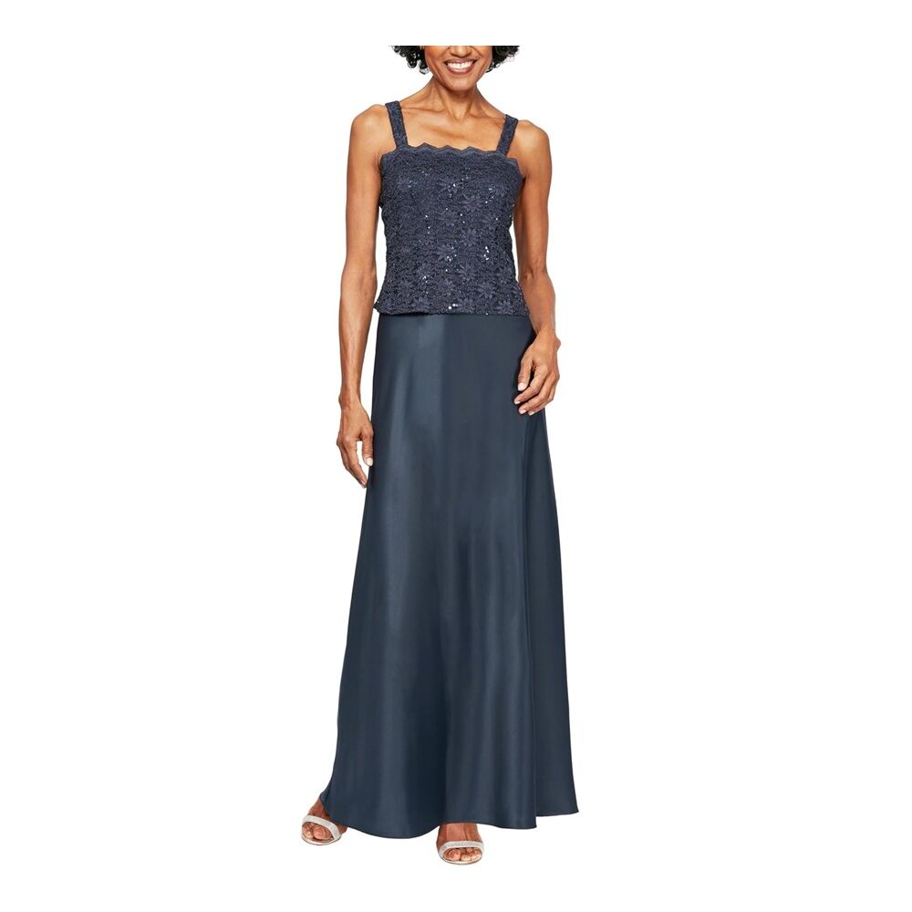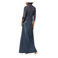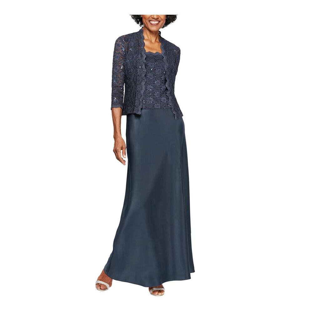 ALEX EVENINGS Women's Faux Jacket Long Dress with Satin Skirt - Midnight / Getaway Solids