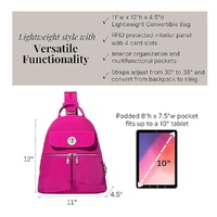 - Product Style: Naples Convertible Backpack - Travel Sling Crossbody - 12" Nylon Handbag W/ Rfid & Padded Tablet Sleeve