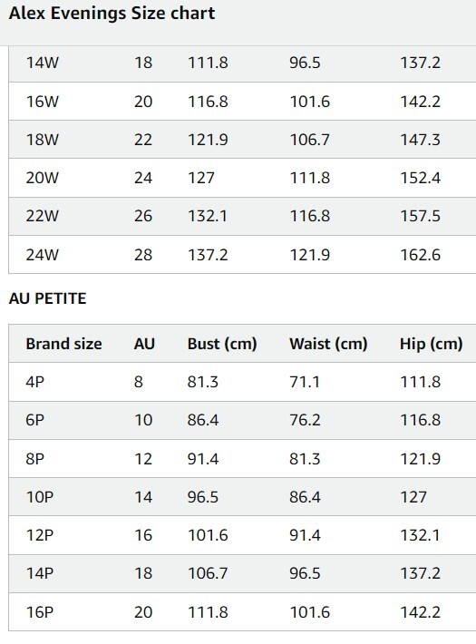- Sizes for Every Woman: At Alex Evenings, we embrace the beauty of every woman. Our inclusive sizing, from Petite to Regular, and Plus sizes, ensures that our dresses are designed to complement various body types