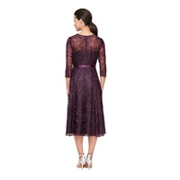 ALEX EVENINGS Women's Tea Length Embroidered Dress with Illusion Sleeves - Eggplant