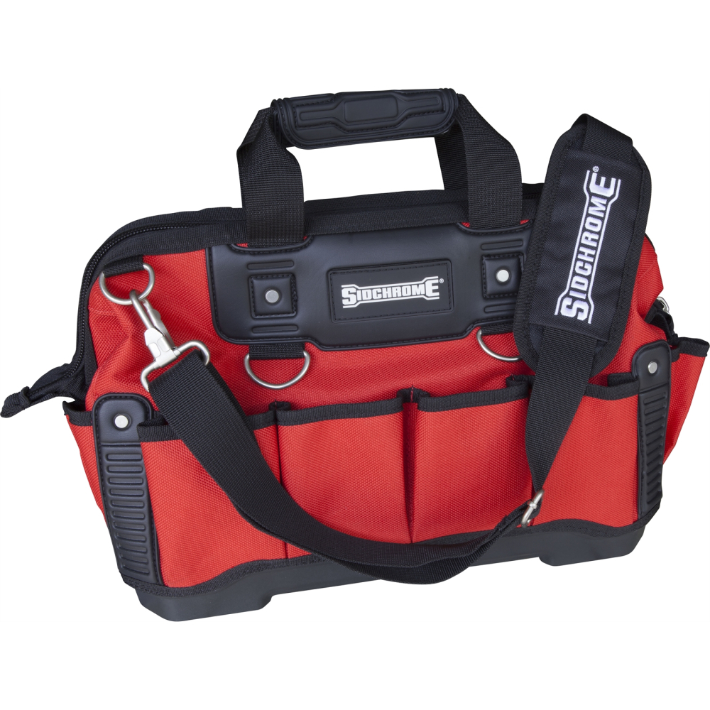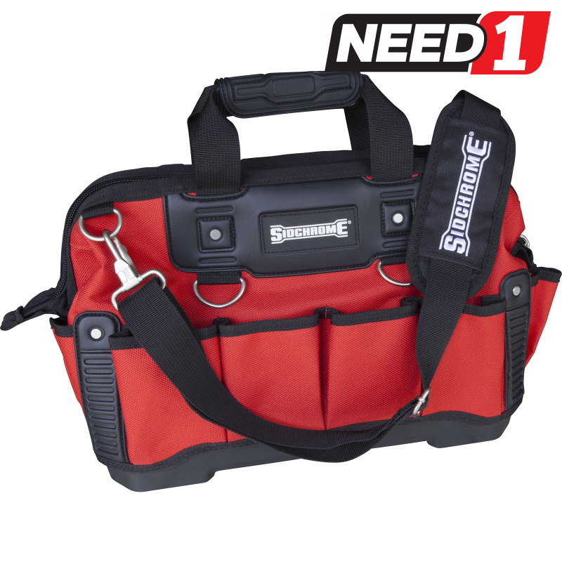 This rigid heavy duty Sidchrome tool bag makes light work of carrying your equipment. Comfortable rubber grip handle, shoulder straps interior pockets and a high quality polypropylene-injected base helps keep your tools safe from the elements.
